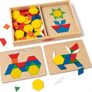 Melissa & Doug Pattern Blocks and Boards with 120 Multi-Colored Wooden Shape Tiles, 5 Double-Sided Puzzle Boards, Tangram Puzzles, Montessori Toys for Girls & Boys