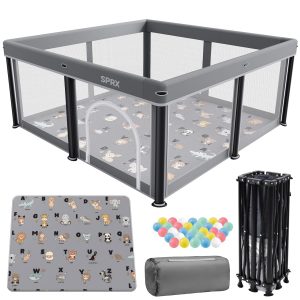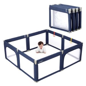 COMOMY Playpens for Babies and Toddlers, 79″x71″ Baby Playard Extra Large, Safe and Non-Slip Baby Fence, Full Mesh Design, Indoor & Outdoor Kids Activity Center