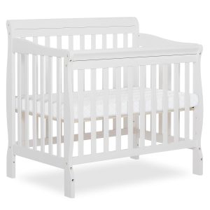 Dream On Me Aden 4-in-1 Convertible Mini Baby Crib in White, GreenGuard Gold & JPMA, Sustainable Pinewood, Non-Toxic Finish, 3 Mattress Heights, Converts to Mini Day & Twin-Size Bed