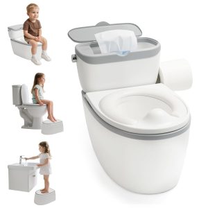 Real Feel 2-in-1 Potty with Wipes Storage, Flushing Sounds & Disposable Liners – Realistic Toilet – Easy to Clean & Assemble