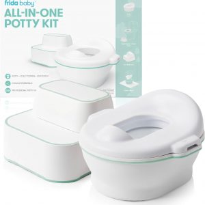 Frida Baby All-in-One Potty | Training Toilet with Toddler Potty Chair, Toilet Seat Topper, Toilet Step Stool, Sink Step Stool, Cleanup Essentials, and Professional Potty Guide