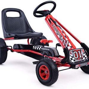 Aosom Kids Pedal Go Kart Ride-on Toy with Ergonomic Comfort, Pedal Car with Tough, Wear-Resistant Tread, Go Cart Kids Car for Boys & Girls with Suspension System, Safety Hand Brake