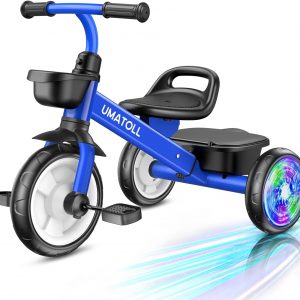Umatoll Tricycle for Toddlers 2-5 Year Old, Adjustable Toddler Bike Outdoor Toys, Birthday Gift for Boy Girl Age 2-4, Trike with Light up Wheels (Blue)