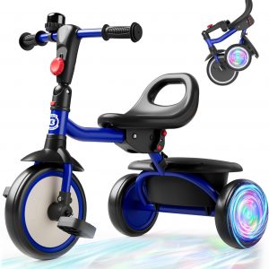 besrey Kids Tricycle with Flash Wheels for Ages 18 Months to 5 Years, Toddler Tricycle with Bell, Kids Tricycle, Gift for 2-5 Year Olds, Gift and Toy for Boys and Girls, Tricycle for Toddlers, Blue